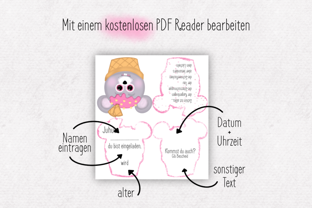 1x PDF Eis Maus Einladung editierbar