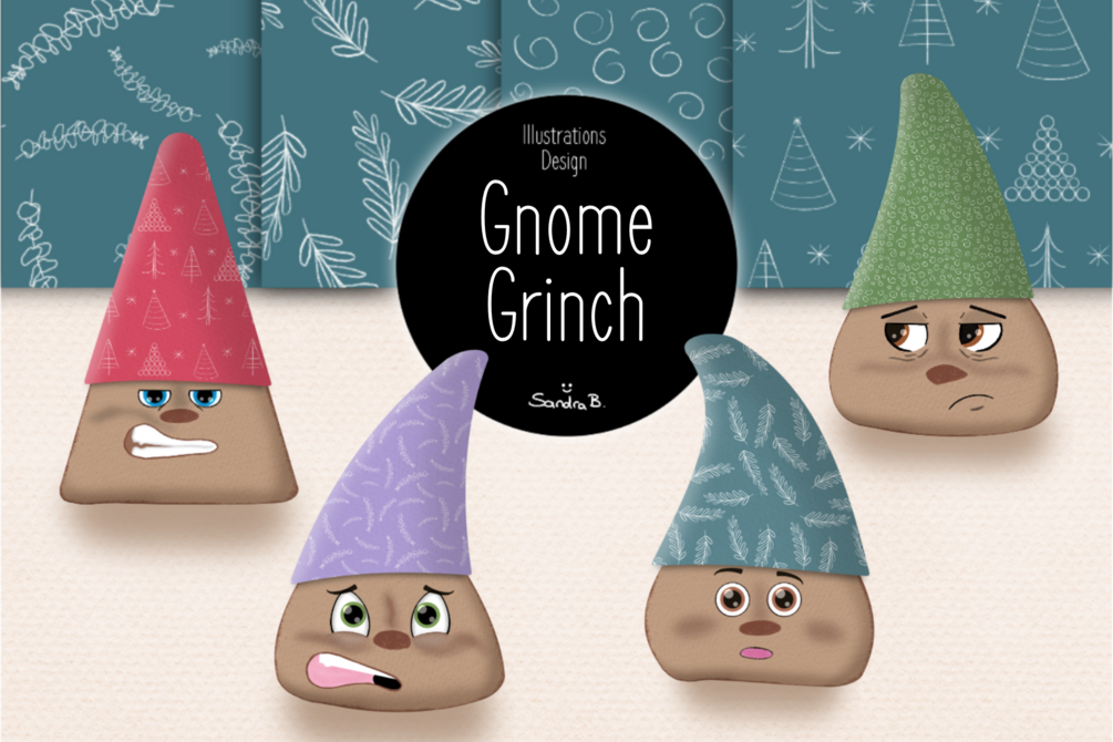 Gnome Grinch Weihnachtscliparts und nathlose Muster - 8 handgemalte Weihnachts PNG Dateien Ideal für Einladungen, Bullet Journals, Visitenkarten, Branding, Instagram, handgefertigte Bastelartikel, Scrapbooking, bedrucktes Papier, Desktop-Hintergründe, Bilderrahmen, Poster, Musterfüllungen, Oberflächenstrukturen, Website-Hintergründe, Textilien, Hochzeit, Einladungskarten, Geschenkverpackungen und Ihre anderen kreativen Projekte.