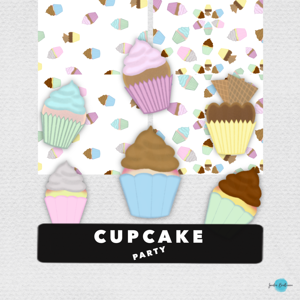 Cupcake für dich als Clipart verpackt für deine nächste Party. Dazu noch schicke nahtlose Muster, um deinen Auftritt perfekt zu machen. Kreiere deine Partyeinladung, deine Sommerparty oder deinen Kuchen mit etwas besonderem.