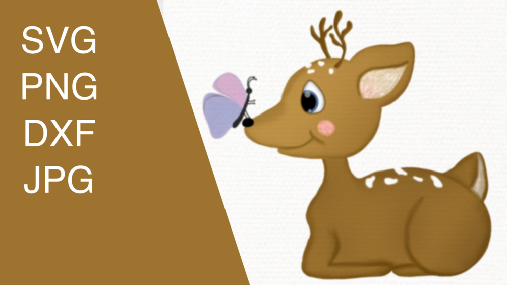 Ein kleines Bambi und auf seiner Nase sitzt ein Schmetterling. Die verschiedenen Dateien kannst du für dein nächstes kreatives Projekt verwenden. Ob für dein Bullet Journal, zum Scrapbooking, für deinen Plotter oder deine anderen kreativen Vorhaben.